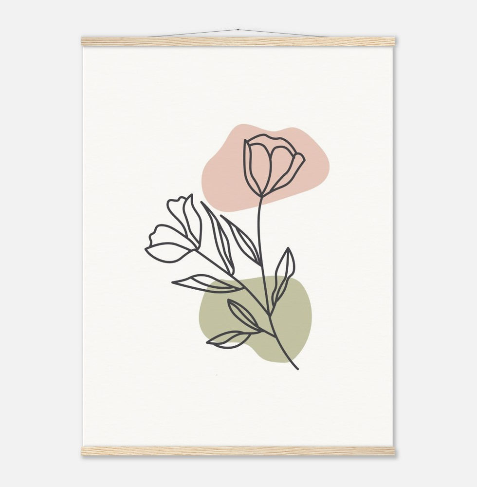 Our minimalist wooden hangers are made with four magnetic wooden dowels, two that clamp to the top of your print and two that clamp to the bottom to give a vintage look and feel. The poster is made on our master's edition, archival museum-quality paper. It is off-white, uncoated, and the superior choice for art enthusiasts who appreciate world-class quality to enjoy artworks most luxuriously. While the poster and hangers are packed separately in one box, final assembly is required by the end recipient. Don’t worry; it's a snap to put them together - no expertise is required. Features: The hangers are made from pine and come in four color variants: black, white, natural wood, and dark brown wood. The cotton rope attached at the top matches the hanger color. Designed magnetically, the hangers do not damage the poster and also makes it easy to switch prints, making it a versatile and durable option.Our matte paper is uncoated and natural white (off-white). The 250 gsm/ 110lb paper is perfect for fine art, designed to last for years without losing its original beauty.With alkaline papermaking technology, this poster is acid-free, meaning the pH of the pulp that is used to form the paper is above 7 (neutral). The paper is also buffered with an alkaline reserve, such as calcium carbonate, to neutralize acid compounds absorbed from the atmosphere or formed through natural aging. This ensures that your poster will last many years without any yellowing or discoloration.Our poster is free from or low in OBA (optical brightener additives). This ensures that the natural white color of the paper remains consistent under different lighting conditions. In contrast, the color of papers that contain optical brighteners can shift depending on the light source. Additionally, the color of OBA-free paper remains more consistent over time, so you can enjoy the poster for years without any shifts.We use FSC-certified paper and hangers or equivalent certifications, depending on regional availability. It’s better for the people and the planet.Each poster and hanger is shipped in robust packaging, ensuring it arrives in pristine condition.Paper sizes may vary slightly by region. For the US and Canada, the measurement is in inches, while for the rest of the world, it is in centimeters. It is printed and shipped on demand. No minimums are required.